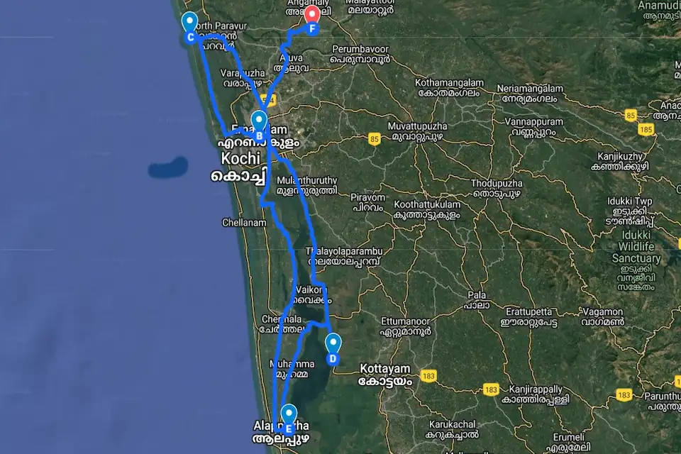 Alleppey (Alappuzha), Kochi (Cochin), Kovalam, Trivandrum (Thiruvananthapuram), Varkala Beach