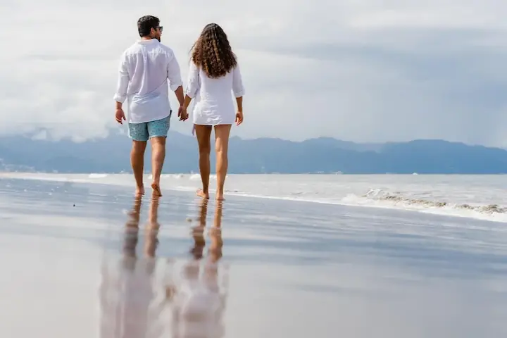 Travellers enjoy long beach walks, sunbathing, swimming, shoreline photography, and peaceful evenings watching the Arabian Sea change colours during sunset.
